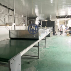 Dài x rộng x cao = 10000 x 1580 x 650 (mm) 7 hòm sấy, kích thước mỗi hòm : 1100x1580x450 mm 2m băng tải đỡ sản phẩm đầu ra Thông số kỹ thuật chung: – Khung vai làm bằng nhôm định hình 40x80mm – Khung chân làm bằng nhôm định hình 40x80mm – Dây băng tải pvc xanh B1200x3mm (chịu nhiệt max độ 120 độC) – Motor kéo 400w qua giảm tốc I25-50 ( điều khiển inventer ( biến tần) – Tấm đỡ băng tải chất liệu tôn mạ kẽm cắt laser chân gấp – Lô kéo băng tải D80 bọc cao su chống chơn – Khung băng di chuyển bằng bánh xe – Tủ điện vận hành băng chuyền. Điều khiển 3 vùng độc lập thông qua 3 bộ điều khiển nhiệt AX7 hoặc AX9 hanyoung – Chân tăng chỉnh L100mm – Hòm sấy nhiệt độ điều chỉnh 35-80 độ (hòm sấy có khoảng trống + bông cách nhiệt), chất liệu tôn mạ kẽm cắt laser chấn gấp nhồi bông thủy tinh dày 50mm – Bóng sấy hồng ngoại 1000mm có quạt đối lưu giúp khí nhiệt trao đổi nhiệt độ ổn định, – Bóng sấy bố trí khoảng cách 300mm – Tủ điện điều khiển chung hòm sấy + băng chuyền. Điều khiển phương thức PID tránh bức xạ nhiệt, tiết kiệm điện năng – Quạt khuấy gió 1 pha 200w (số lượng 3 cái) – Công suất khởi động 20kw, công suất tiêu thụ điện năng 7kw |
